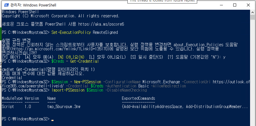 Import-PSSession $Session -DisableNameChecking